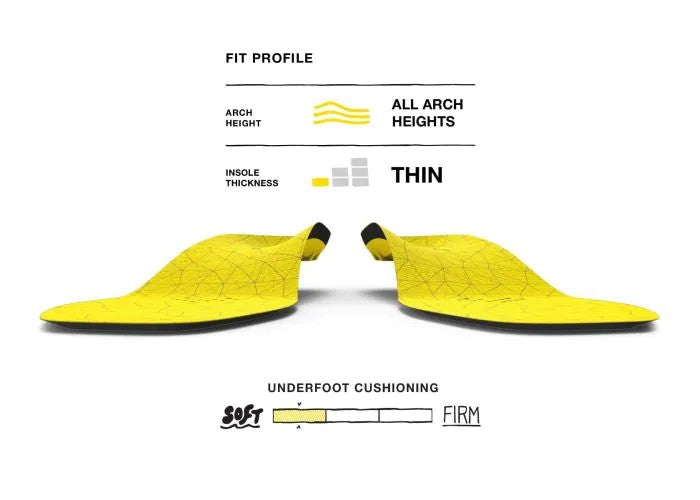 These insoles are ideal for hockey players and pond-hockey enthusiasts seeking improved skate fit, reduced friction and blistering, and powerful stride efficiency. They ride low-profile to preserve skate feel while offering durable support.